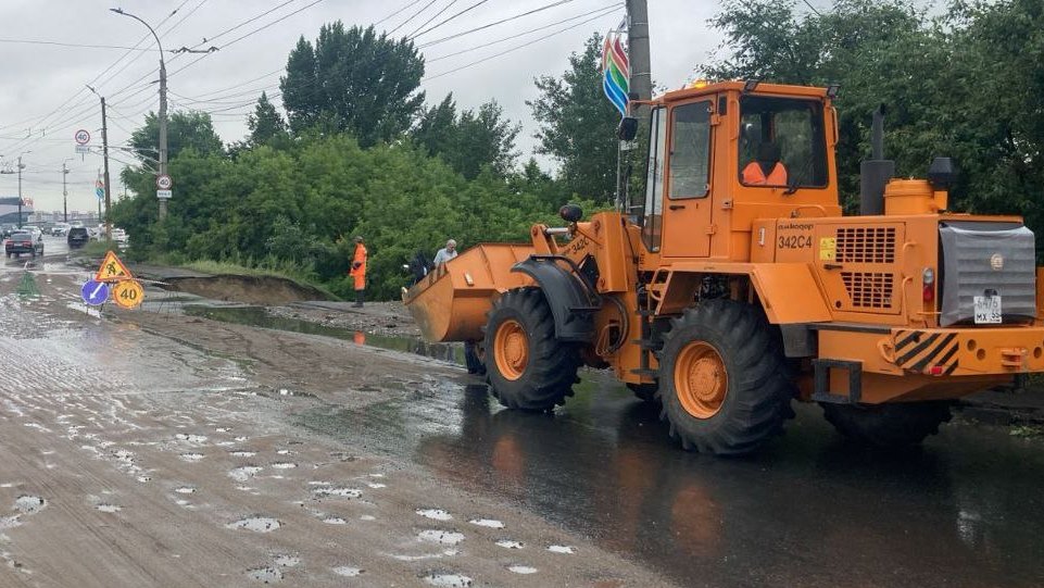 Сегодня в Омске на спуске с проспекта Мира к мосту имени 60-летия ВЛКСМ обрушилась часть обочины. Кадры с места происшествия горожане опубликовали в соцсетях.