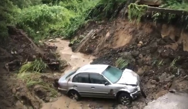 Сегодня на улице Рокоссовского около гаражей провалился асфальт. Как сообщают очевидцы, дорогу размыло. В результате в яму упал автомобиль.
