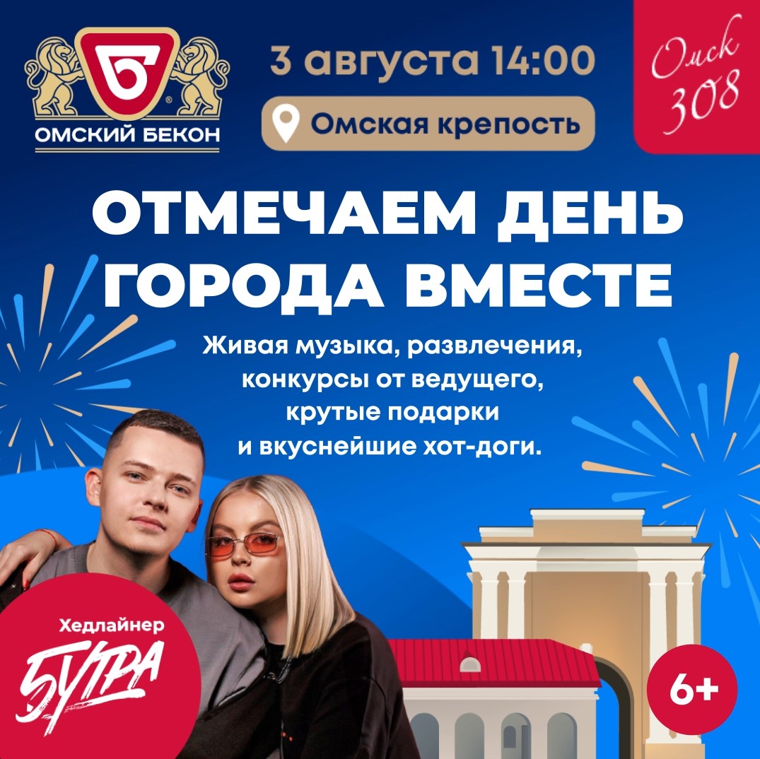 В день 308-летия Омска на набережной между Тобольскими воротами и Денежной кладовой развернется большая площадка от «Омского бекона». Целый день здесь будут проводиться захватывающие интерактивы и выступления различных творческих коллективов. Все гости праздничной площадки смогут получить крутые подарки от бренда за участие в конкурсах.