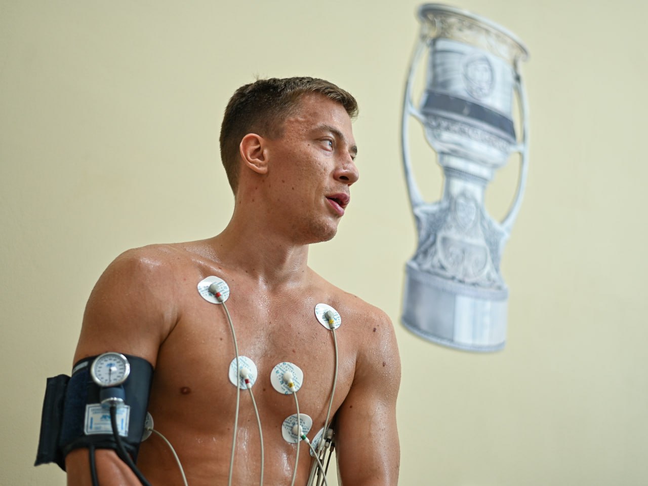 А защитник Павел Коледов проходит эхо-кардиограмму.