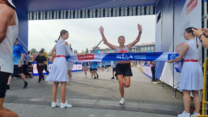 Легенда бегового праздника Марина Ковалева, четырехкратный победитель Сибирского международного марафона, в этом году по состоянию здоровья бежала дистанцию не 42 километра 195 метров, а 10 километров.