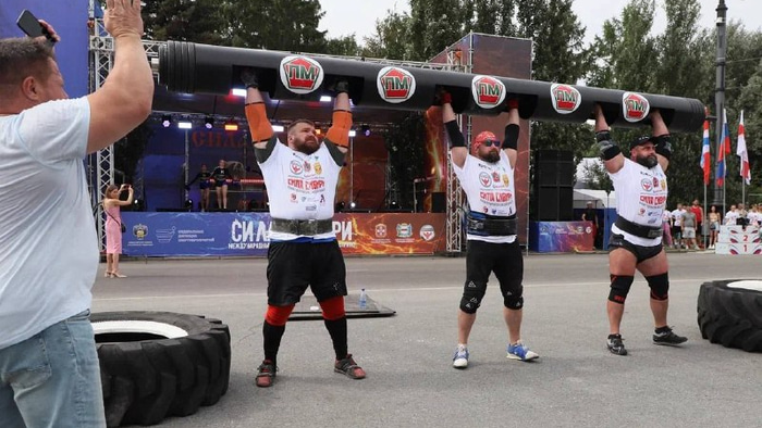 Мужчины выполнили подъем богатырского бревна весом 360 кг, становую тягу автомобиля весом 320 кг и перенос богатырской карусели весом 350 кг, а также привели в движение в технике «арм-овер-арм» автопоезд весом 12 тонн.