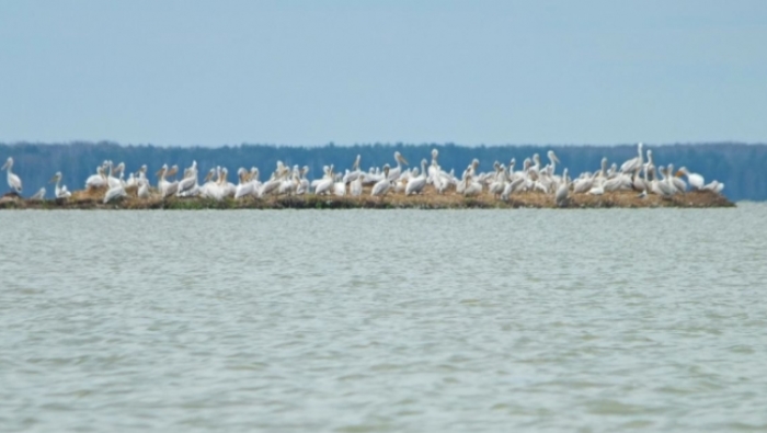 На озера Крутинского района вновь вернулись кудрявые пеликаны. Птицы, занесенные в Красную книгу России, гнездятся на искусственном острове на озере Тенис, образуя самую северную колонию этого вида в мире.