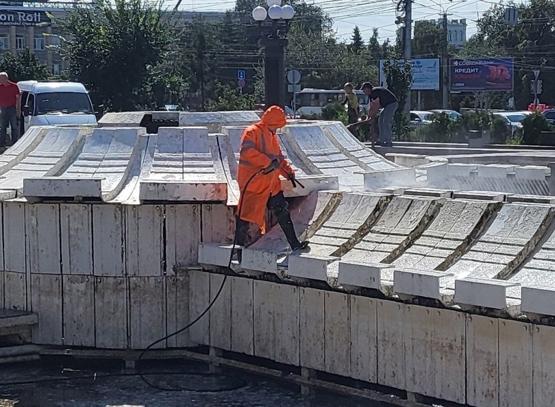 В Управлении дорожного хозяйства и благоустройства Омска, похоже, не стали дожидаться следующего лета и оперативно почистили покрытие на Музыкальном фонтане.