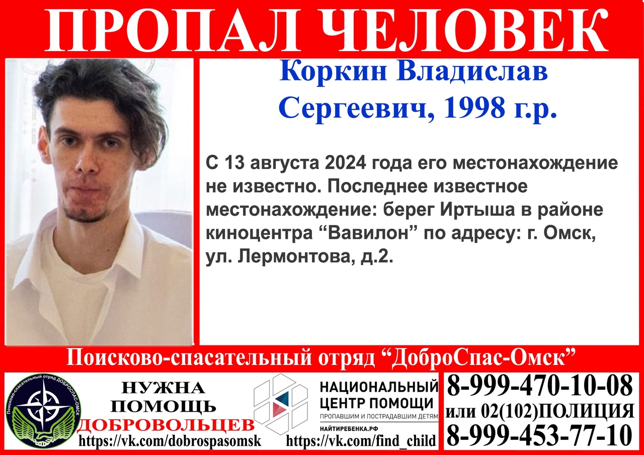 Вчера,14 августа, омские поисковики объявили поиски 26-летнего Владислава К.  Молодого человека видели последний раз два дня назад, 13 августа, в районе киноцентра у речного вокзала.