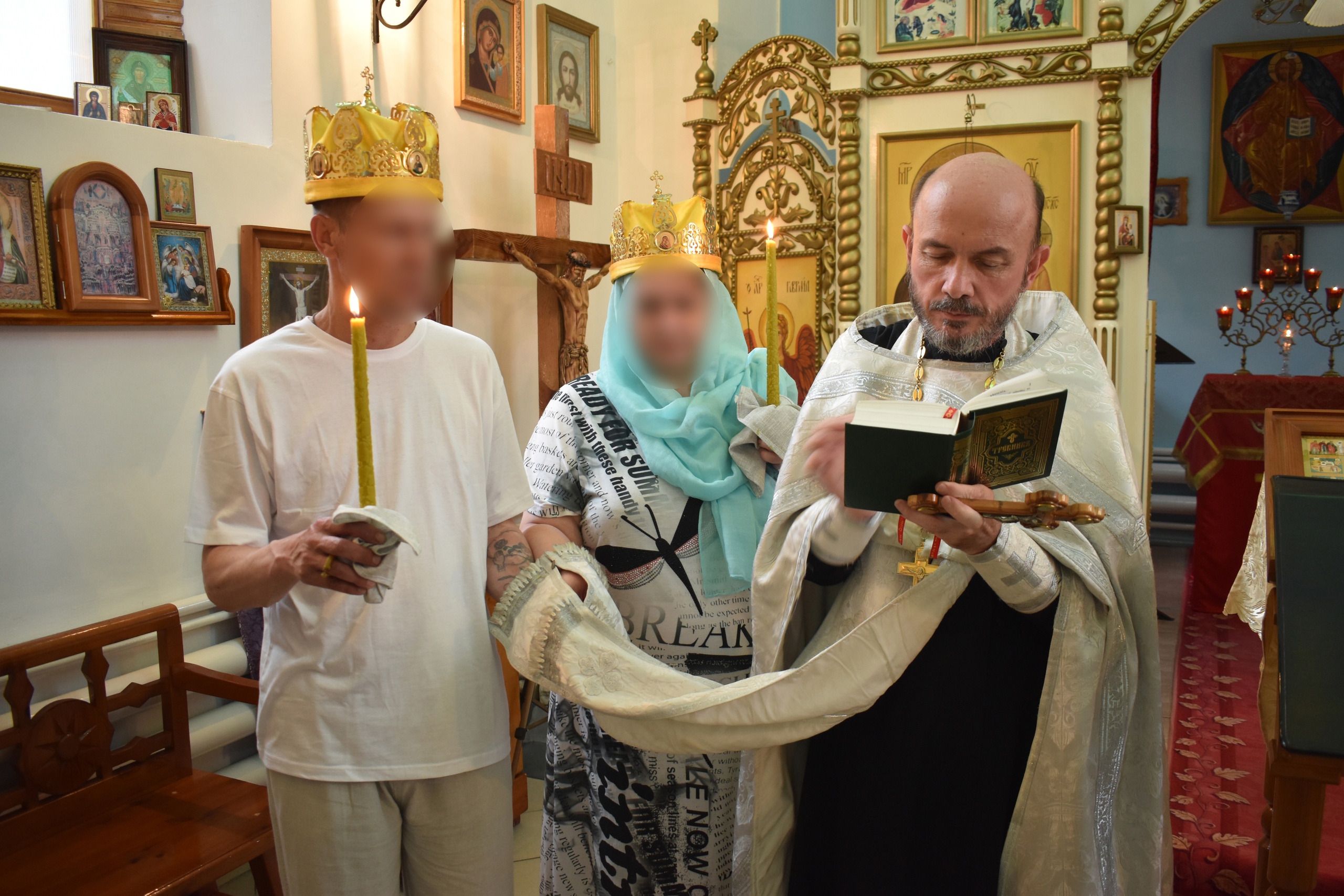 В храме омской исправительной колонии № 7 провели обряд венчания. Церковный брак заключила уже женатая пара.