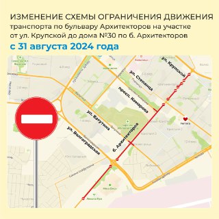 С завтрашнего дня, 31 августа, важный перекресток бульвара Архитекторов на пересечении с улицей Волгоградской откроют для транспорта. Возобновится движение по двум полосам в каждом направлении.