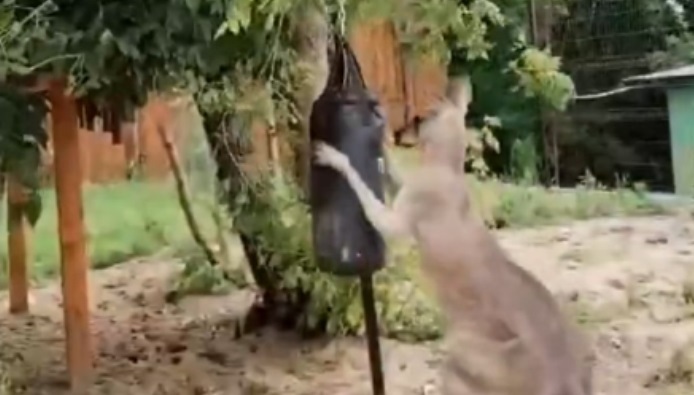На кадрах видно, как животное примеривается к груше, фиксирует ее передними лапами, а затем наносит сокрушительный удар задними. Поединок кенгуру с боксерским снарядом проходит с явным преимуществом Авося. Подписчики паблика болеют за своего любимца. Ему уже дали прозвище «Маленький бандит».