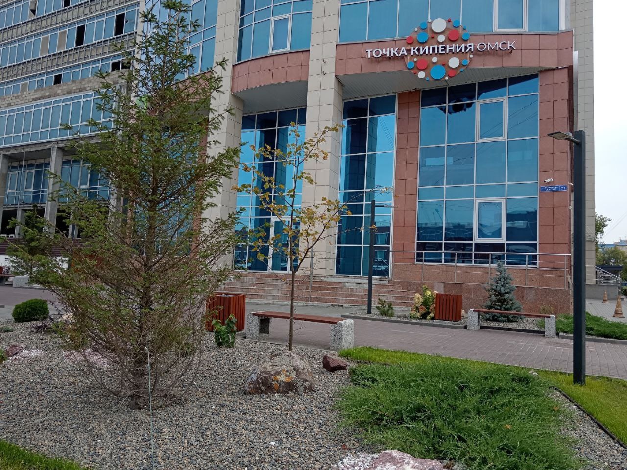 Таким образом, можно с уверенностью сделать вывод, что компании «Маршал центр» удалось не только осовременить здание офисной высотки, где располагается «Точка кипения», но и обустроить прилегающую территорию, превратив ее в маленький зеленый оазис в центре Омска.