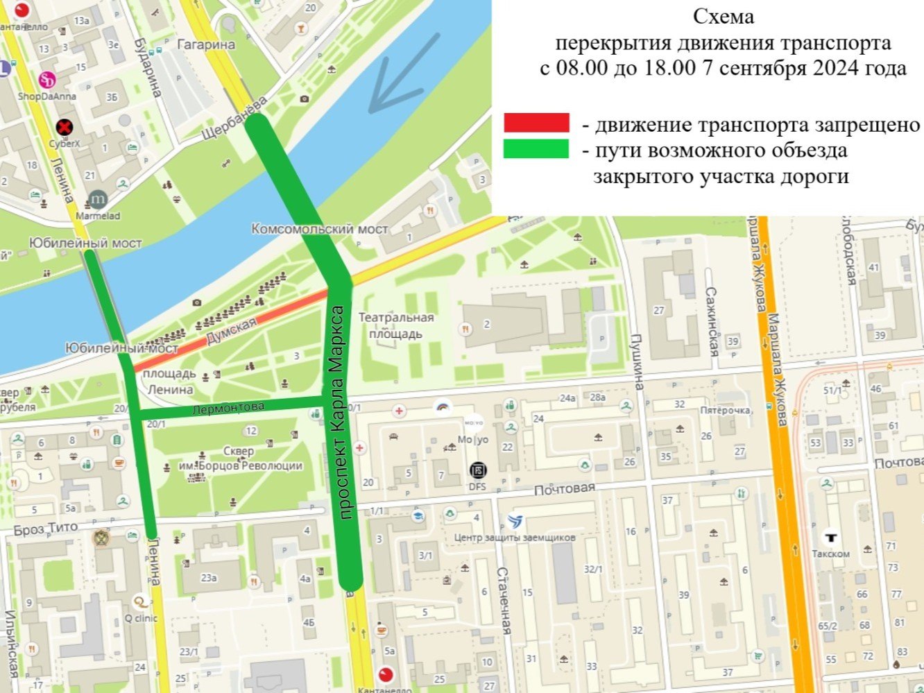 В субботу, 7 сентября, с 08:00 до 18:00 в Омске перекроют улицу Думскую. Движение остановят на участке от улицы Ленина до проспекта Карла Маркса. С 7:00 до 18:00 там также запретят парковку.