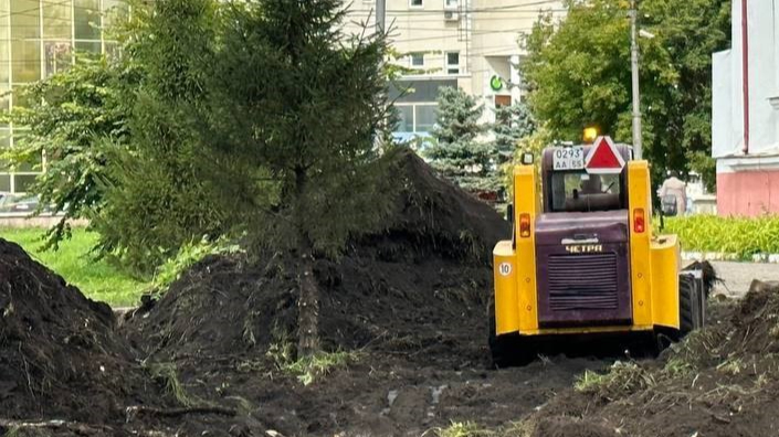 У кинотеатра «Маяковский» в Омске высадят туи, спиреи и барбарис