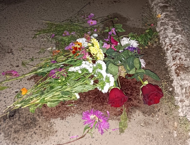 Родственница погибшей предоставила кадры с места убийства. К подъезду положили цветы. Прощание с погибшей состоится 23 сентября утром в храме на ул. Орджоникидзе, 289а.