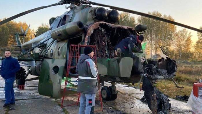 В Омске на авиабазе подростки подожгли вертолет Ми-8