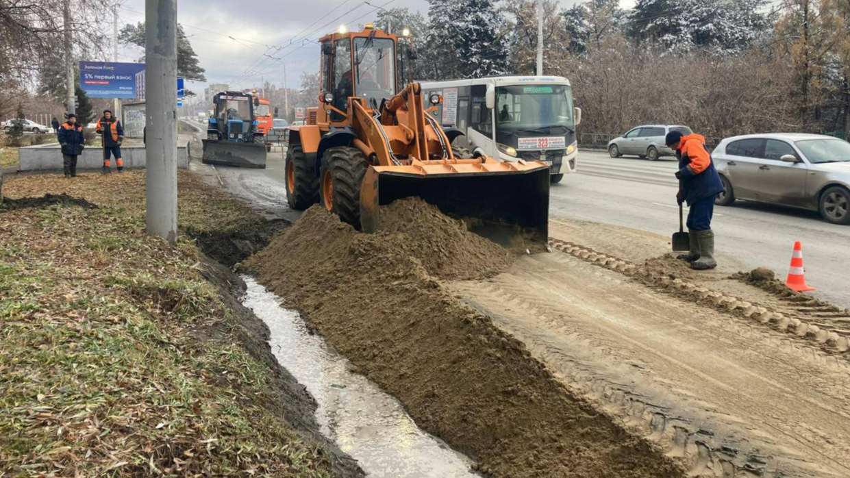 В Омске укрепляют обочину Красного Пути, с которой автобус слетел в канаву