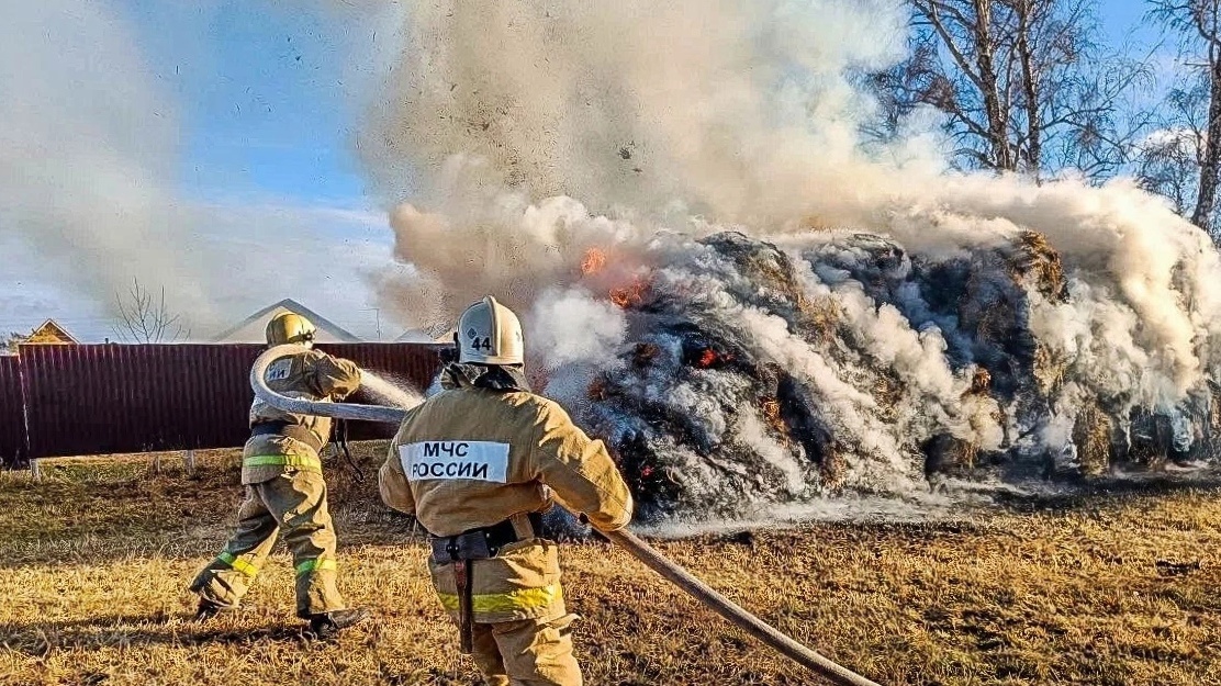 Вчера днем в селе Азово Омской области произошел пожар. Загорелись сено и солома, заготовленные на зиму для кормления скота.