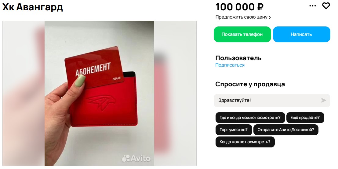 Продавец хочет получить 100 тыс. рублей за абонемент «Все включено». В него входит возможность посетить все домашние игры регулярного чемпионата и плей-офф.