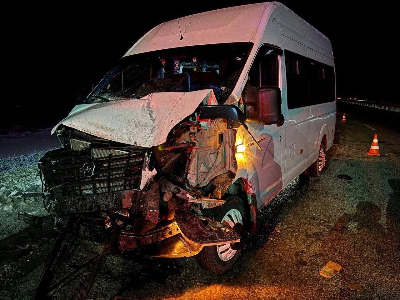 Водитель маршрутки столкнулся с иномаркой на трассе Омск – Нижняя Омка.