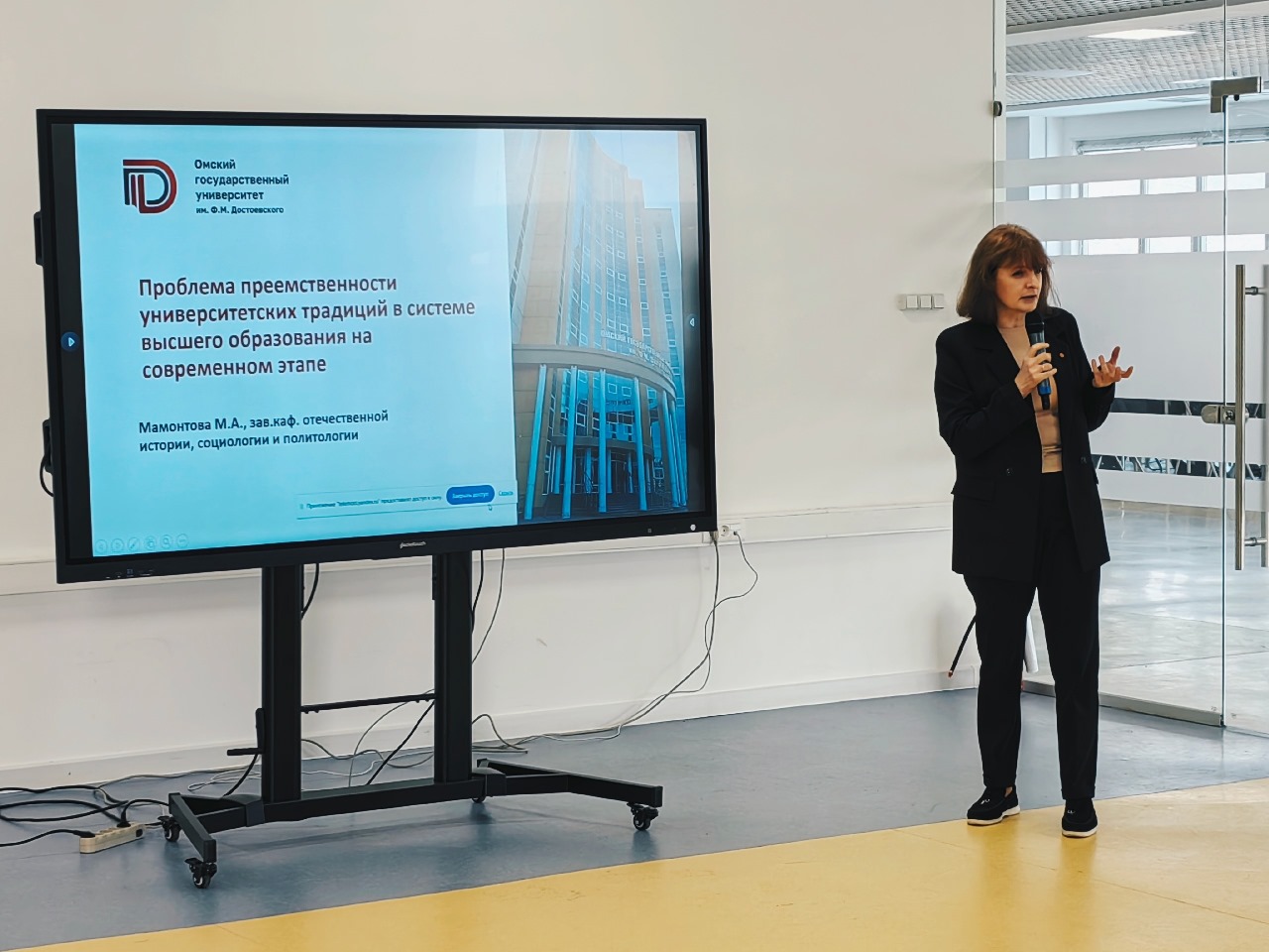 Кандидат исторических наук, заведующий кафедрой отечественной истории, социологии и политологии ОмГУ Марина Мамонтова предложила студентам сравнить университетское образование разных периодов и выявить традиции и новации в современной университетской среде.