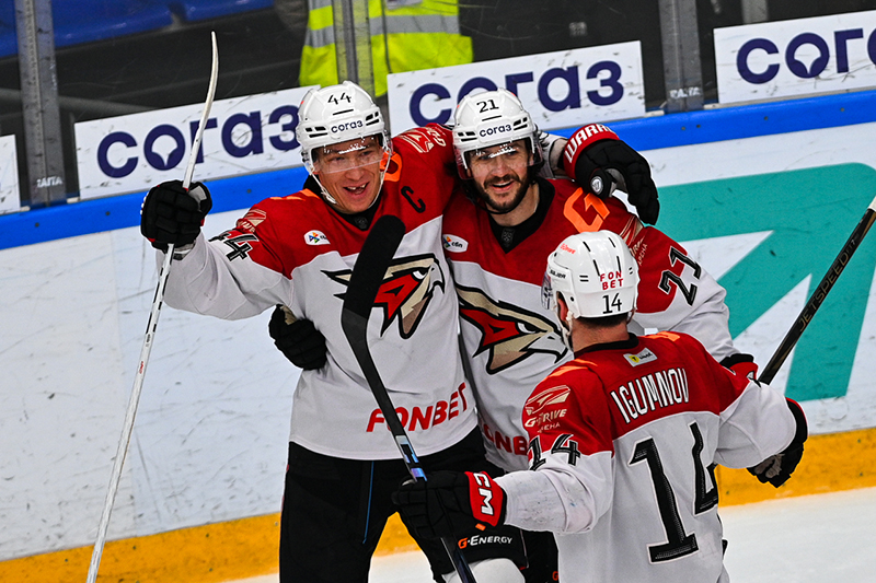 Однако «ястребы» провели несколько успешных атак, и нападаюший Наиль Якупов заработал первую шайбу для омичей. Второй гол забросил нападающий Иван Игумнов, сравняв счет.