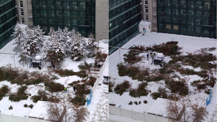 Как заявили в областном Минздраве, деревья пришлось срубить для строительства нового хирургического корпуса КМХЦ. После завершения работ будут высажены новые деревья.