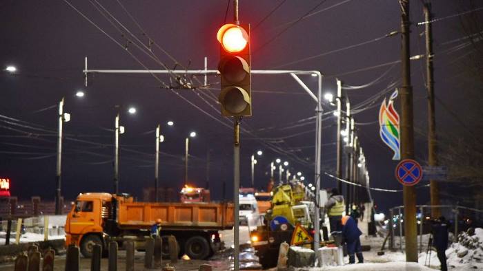 Минувшей ночью на мосту имени 60-летия ВЛКСМ у Телецентра велись работы по подготовке к запуску реверсивного движения. Для этого мост перекрывали с полуночи до 5 часов утра.