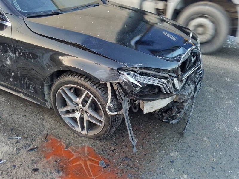 Снимки с места аварии позволяют предположить, что «Хендай» выезжал с парковки и вылетел на дорогу, не заметив «Мерседеса» и получив повреждения боковой части. И заодно по инерции собрал «Чери» и «Ниву». Ги Буше, похоже, повезло, что он сидел сзади. Ударом снесло фару и крыло, то есть переднюю часть «Мерседеса».