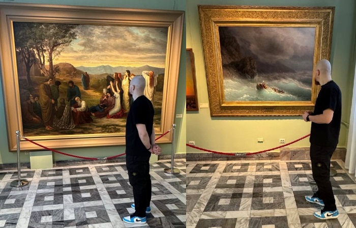 На фотографиях к посту Верба, в частности, рассматривает картины Михаила Боткина «Жены, издали смотрящие на Голгофу» (написана в 1867 году) и Ивана Айвазовского «Буря на Черном море» (1873 год). Обе поступили в Омск в 1925 году – первую передала дочь художника, вторая пришла из государственного музейного фонда.