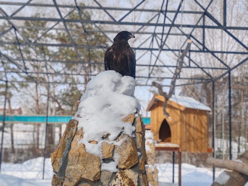 Хищные птицы обосновались в новом просторном доме, где для них создали все необходимые условия. У хищников теперь есть все, что нужно для комфорта: обновленные домики, укрытия, присады, столы для подачи пищи.