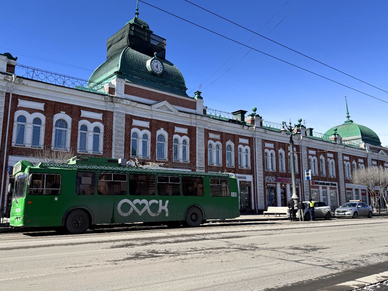 Необычное ДТП случилось сегодня, 23 марта, в районе полудня в историческом центре Омска. Прямо под знаменитой башней с часами на Любинском проспекте иномарка врезалась в троллейбус. На месте аварии работали госавтоинспекторы. Cнимки с места происшествия прислали подписчики «Омск-информа».