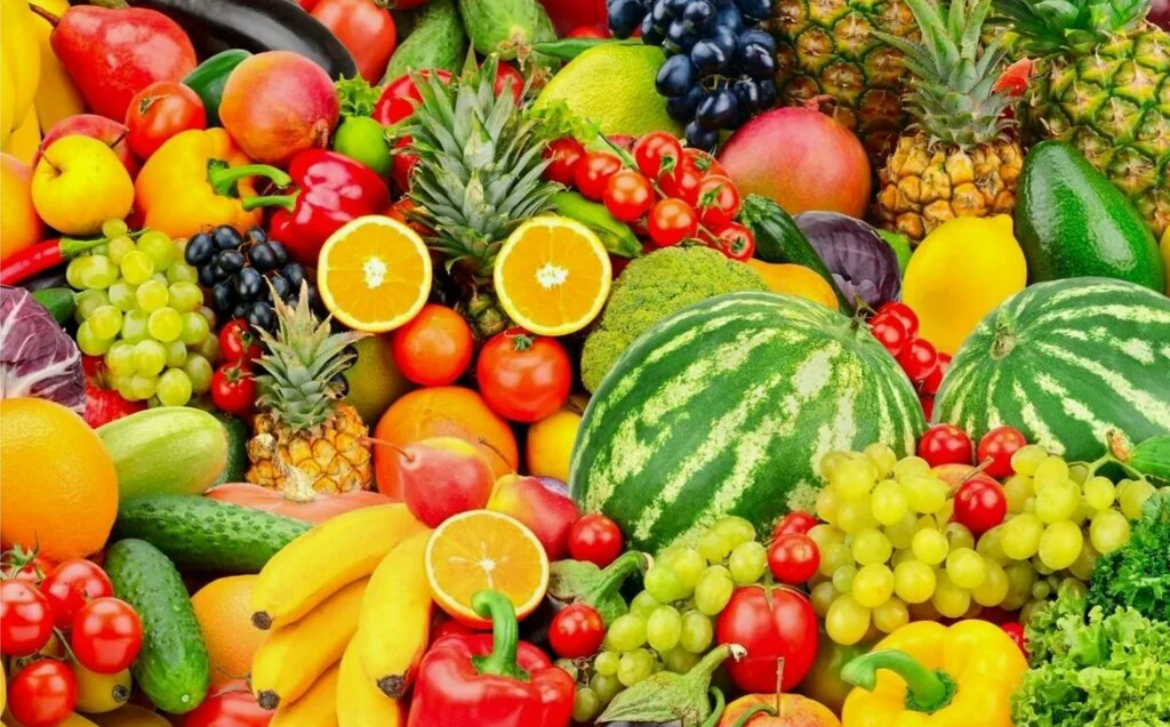 зеленые овощи и фрукты.
