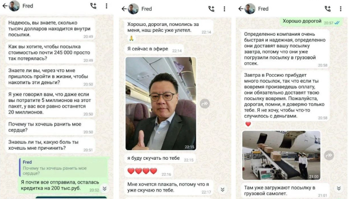 Сотрудники полиции выяснили, что в феврале женщине в соцсети написал неизвестный человек, который представился как Фред. Переписка продолжилась в мессенджере, где мужчина заявил о заключении контракта с Королевством Бутан. В процессе общения он выразил намерение впоследствии переехать к своей избраннице и вместе обосноваться в России. Новоявленный друг якобы отправил посылку, содержавшую золотые изделия, спортивный костюм, дорогой мобильный телефон и 245 тыс. долларов, предназначенных для приобретения дома. Жительница Салехарда была настолько впечатлена, что не заметила, как слезливые сообщения, демонстрирующие привязанность, чередовались со сдержанными инструкциями по дальнейшим действиям.