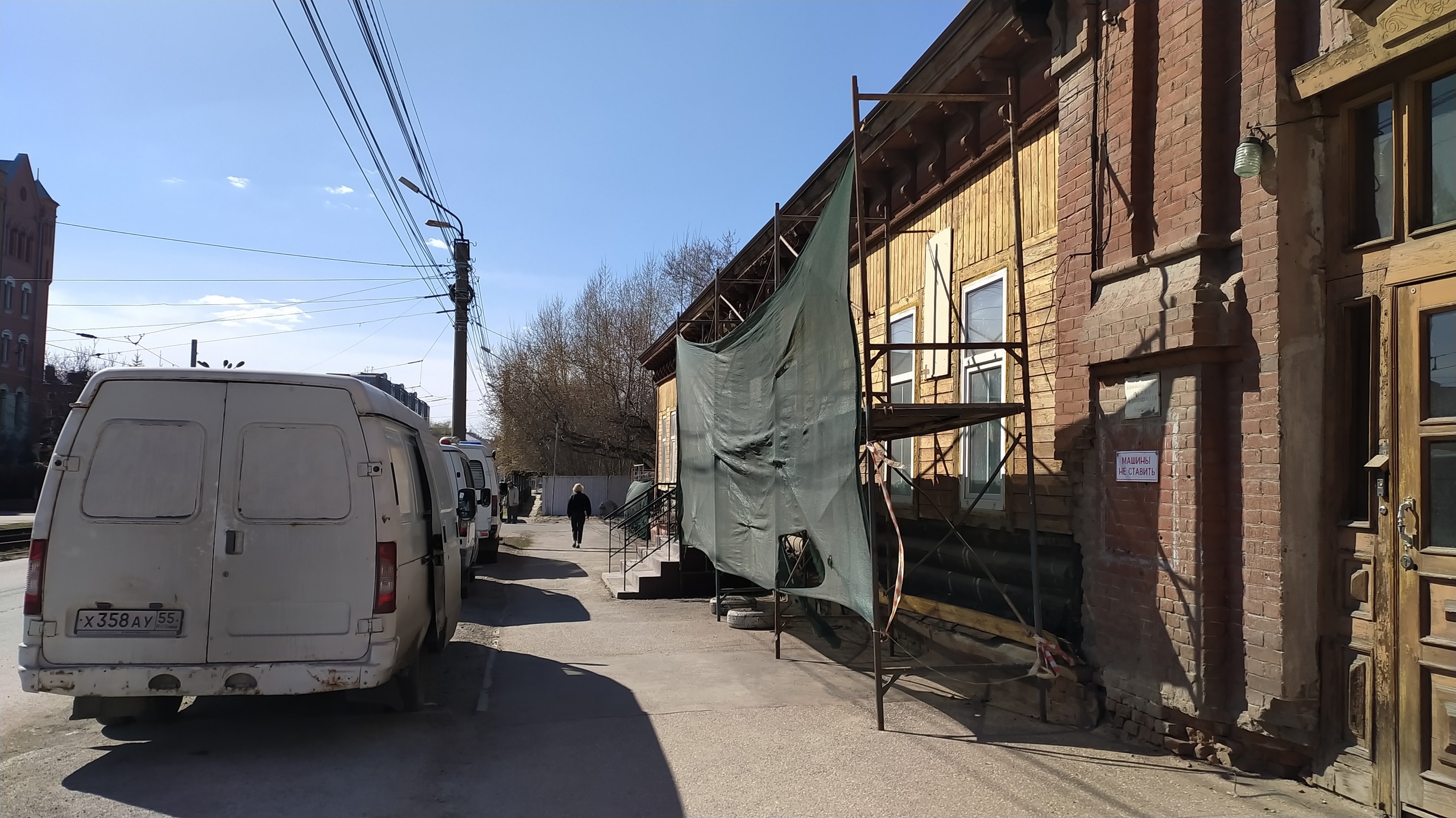 В центре Омска на машины рухнули строительные леса
