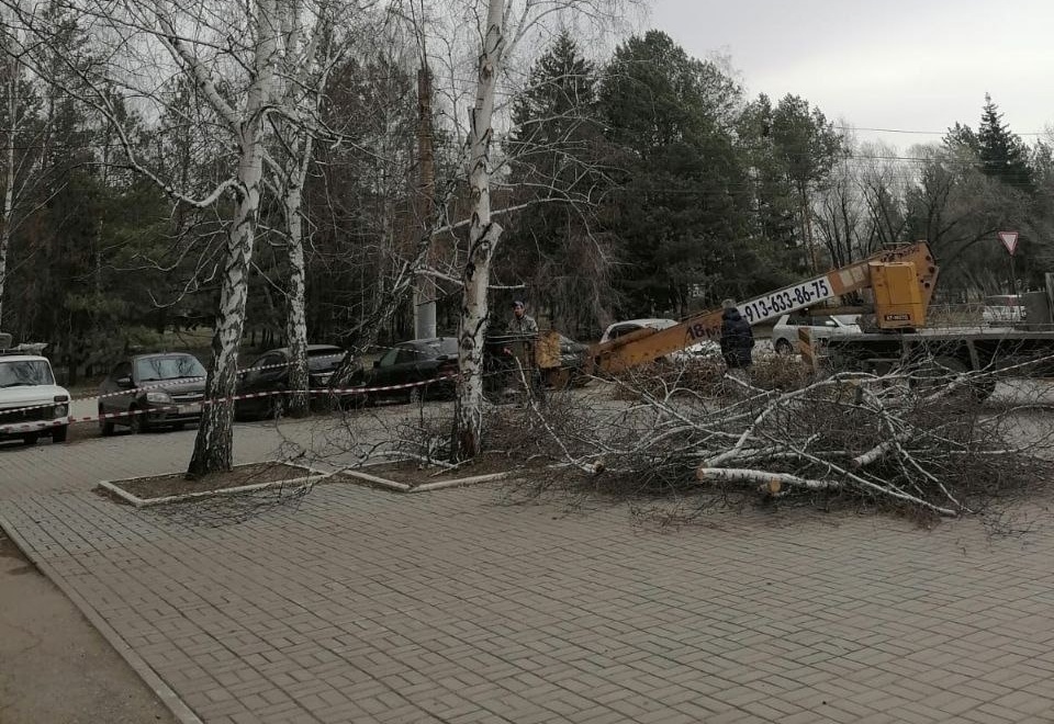 В администрации Кировского округа отметили, что березы пилят без разрешения. Чиновники написали заявление в полицию, чтобы привлечь нарушителя к ответственности.