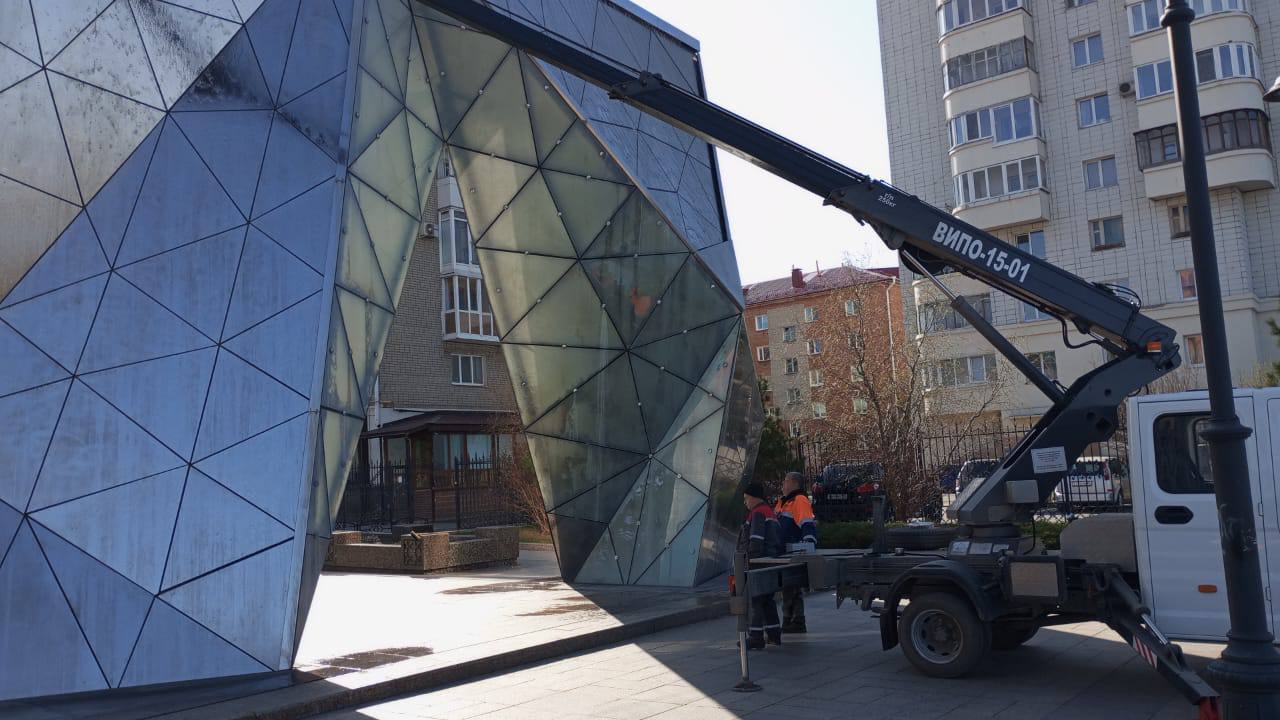 На улице Чокана Валиханова в центре Омска готовят к запуску фонтаны-кристаллы. Сейчас работники учреждения «Эксплуатация объектов внешнего благоустройства» выполняют предварительные процедуры: очищают поверхности и проверяют техническое состояние подземных насосов.
