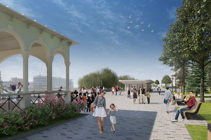 Концепция набережной Тухачевского была разработана еще в 2017 году архитектурным ателье «РИМ» для КБ «Стрелка». Проект актуализировали в 2022 году.