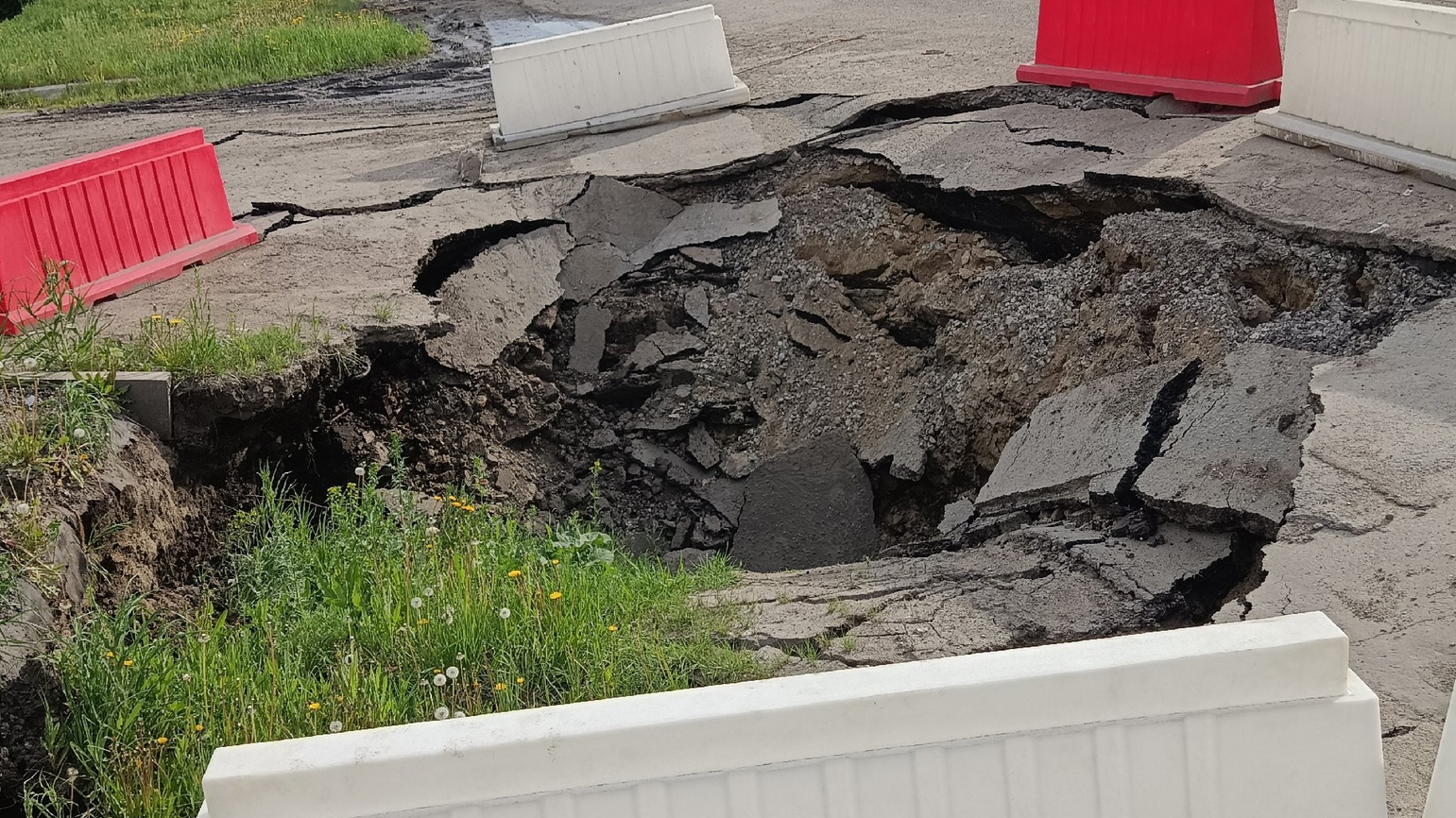 – Крик о помощи! Огромная яма растет с каждым днем, на фото она меньше в два раза, размывает изнутри на глубине. Ничего не делается, кроме как выставили заграждение, и все, даже не могут перекрыть улицу. Трактора и авто продавливают еще сильнее, рядом наш пятиэтажный дом, мы боимся обрушения, – поделился омич в группе «Аварийный Омск».