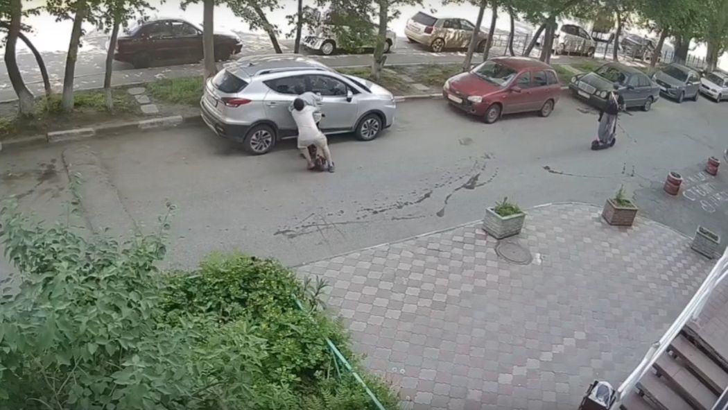 От сильного удара водитель самоката теряет телефон, после чего в панике подбирает его и убегает с места происшествия вместе со своим другом.