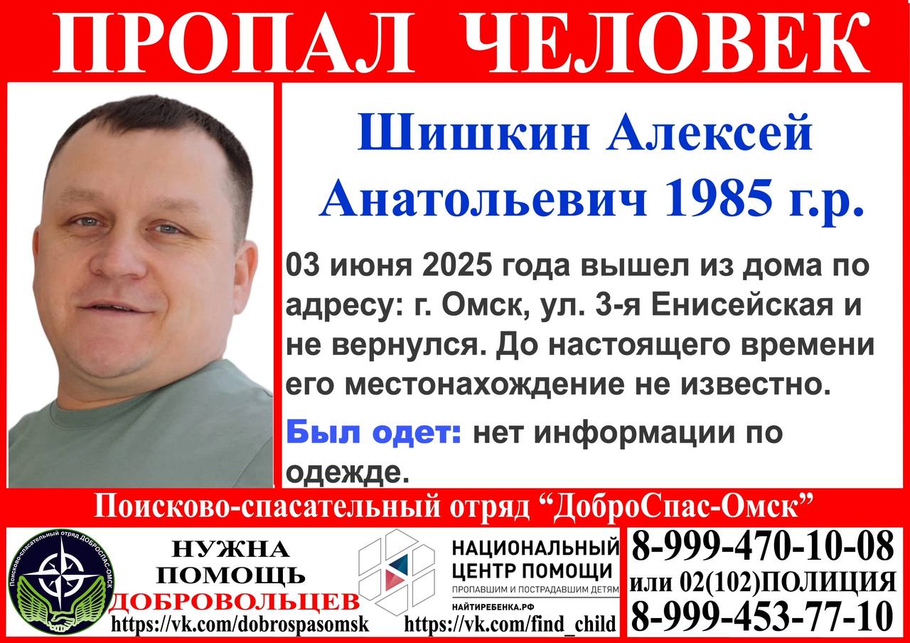 В Омске пропал 40-летний Алексей Шишкин. Как сообщает поисково-спасательный отряд «Доброспас-Омск», 3 июня мужчина вышел из дома на улице 3-я Енисейская и не вернулся. Его местоположение до сих пор неизвестно.