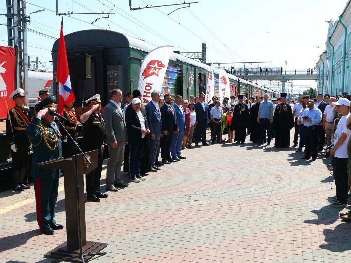 Сегодня, в День России, в Омск прибыл уникальный военно-исторический поезд Минобороны РФ. На передвижной выставке собраны образцы оружия, техники и другие экспонаты, рассказывающие о подвигах советских воинов в Великой Отечественной войне и героизме российских солдат в ходе специальной военной операции.