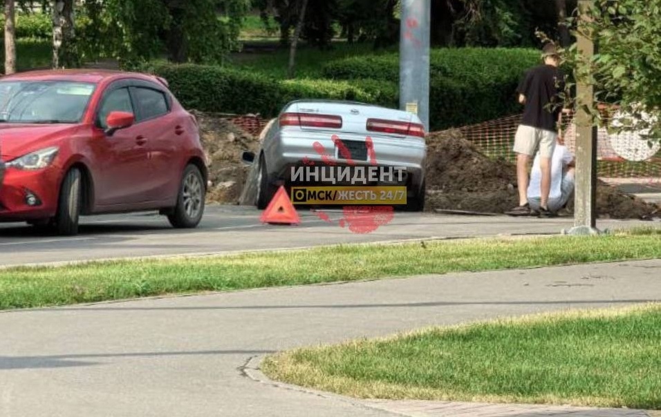 Сегодня утром, 19 июня, на улице Думской возле Аллеи олимпийцев в центре Омска случилось ДТП. Как сообщили в соцсетях очевидцы, один из автомобилей угодил в яму.