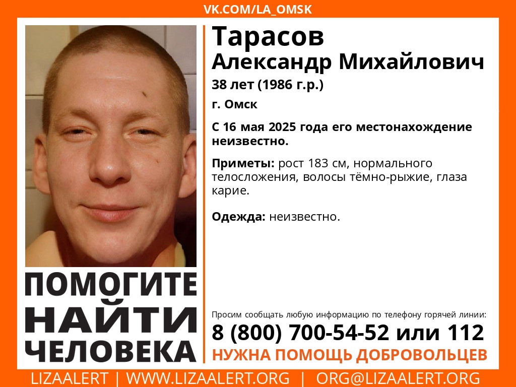 В Омске ищут 38-летнего Александра Тарасова. Как сообщили волонтеры поисково-спасательного отряда «Лиза Алерт», о местонахождении мужчины ничего не известно с 16 мая.