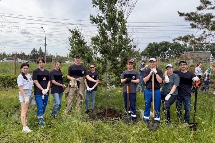 Рабочие завода вместе со студентами ОмГТУ высадили более сотни саженцев.