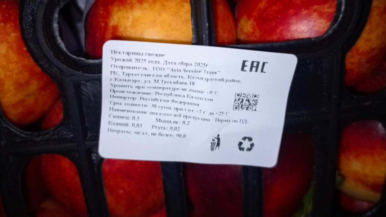 При проверке документов выяснилось, что сопровождающий груз фитосанитарный сертификат был недействительным. Результаты досмотра показали существенное несоответствие: на упаковках фруктов указана страна-производитель Китай, тогда как сертификат выдан властями Казахстана.