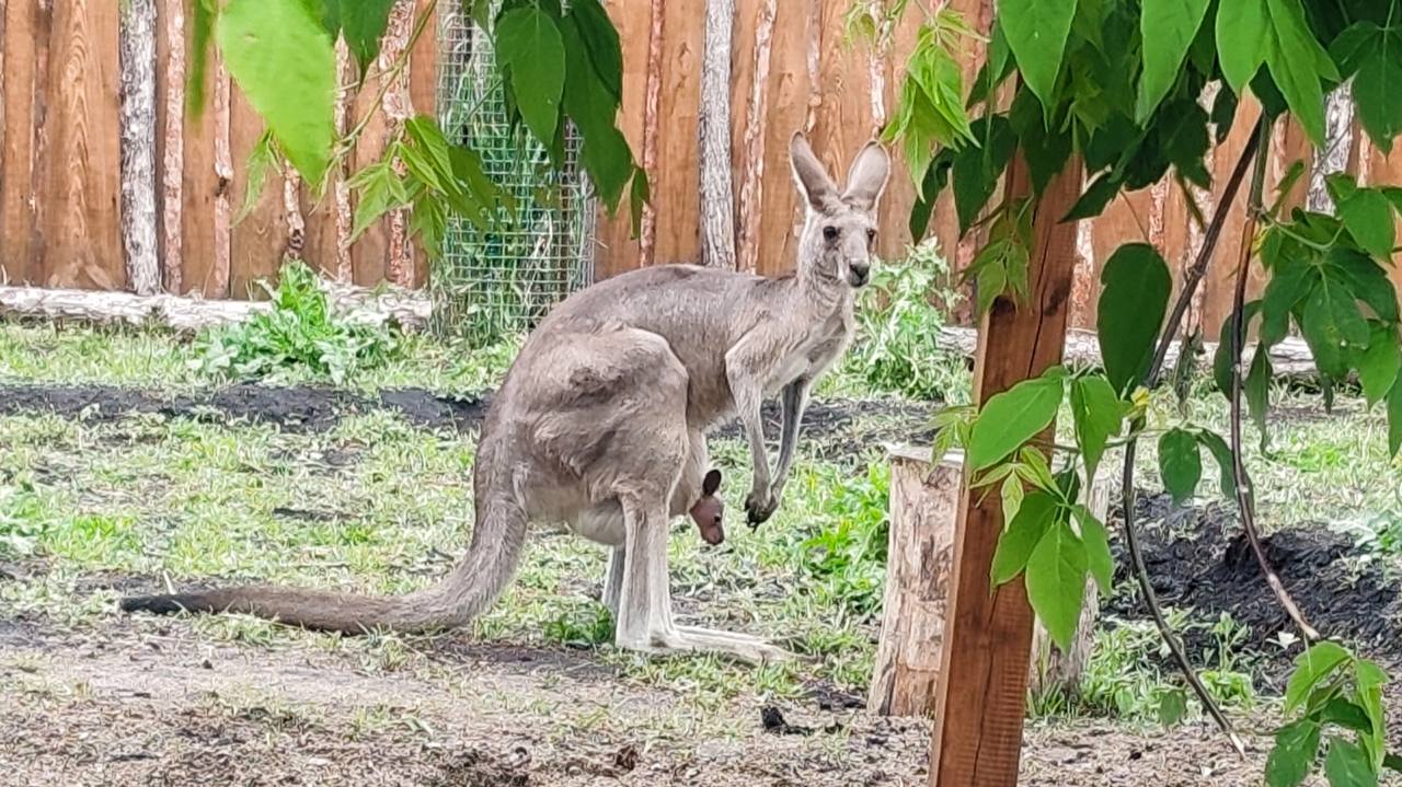 В Большереченском зоопарке кенгуренок отказался покидать родную сумку