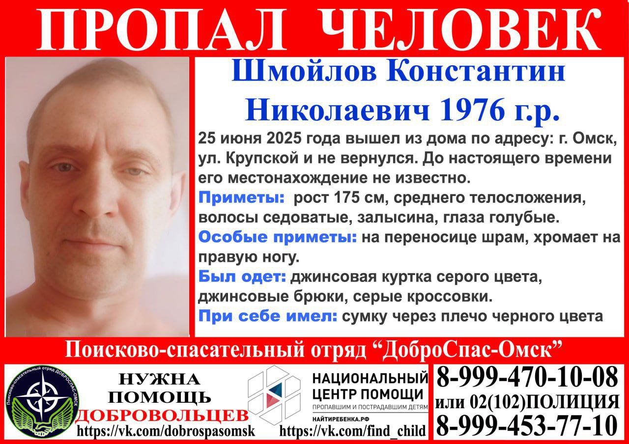 В Омске ищут 49-летнего Константина Шмойлова. Как сообщили волонтеры поисково-спасательного отряда «ДоброСпас-Омск», мужчина вышел из дома на улице Крупской и не вернулся.