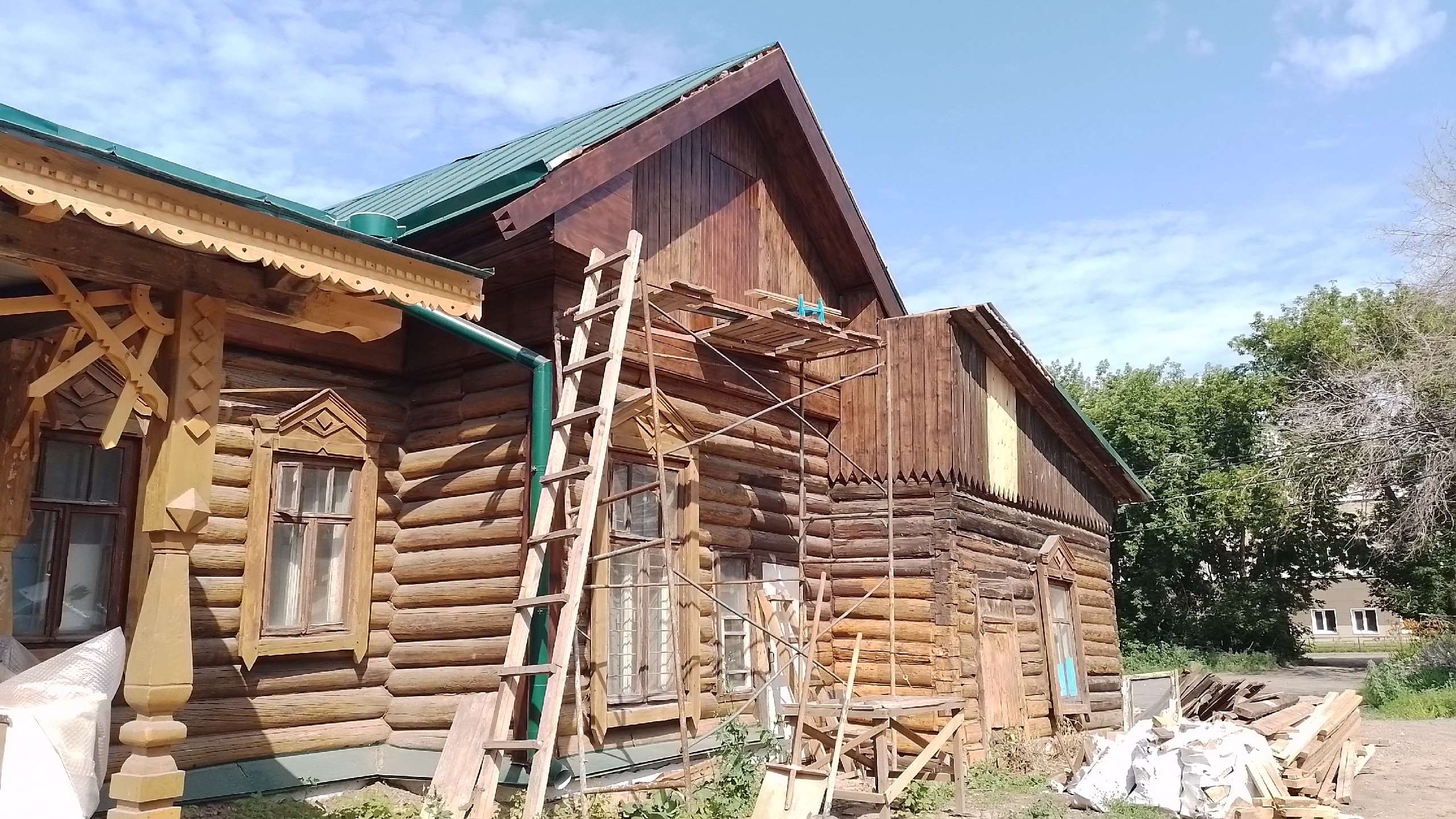 – Сейчас полностью восстановлена кровля, потому что без крыши невозможно было приступить к другим работам. Заменены кое-какие балки, венцы. Сейчас ведется реставрационная работа внутри здания. Восстановлены стены, новые полы подготовлены под линолеум. Сложности в том, что очень многие элементы были разрушены. Приходится их восстанавливать, в том числе по эскизам, старым рисункам, книгам, архивным данными. Но все это решаемо, – отметил подрядчик Роман Чернов.