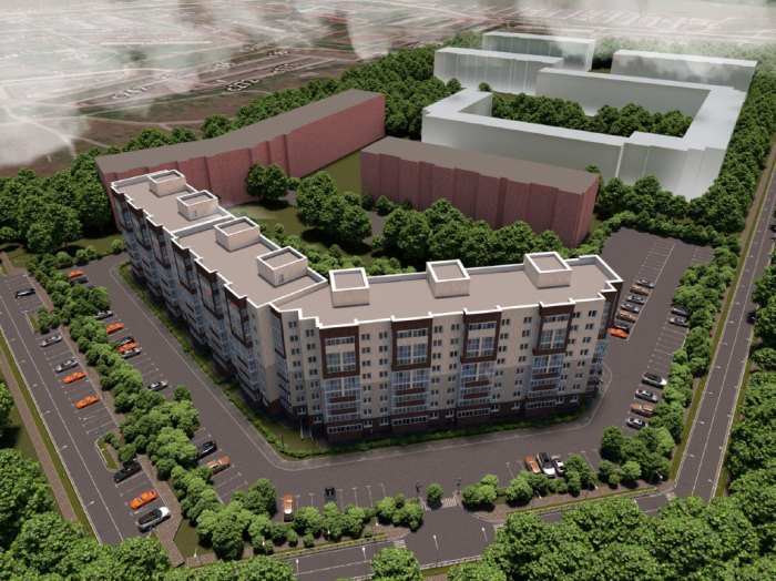 Автомобильные парковки будут расположены по периметру зданий, а не внутри территории МКД.
