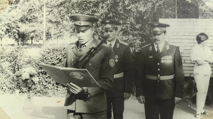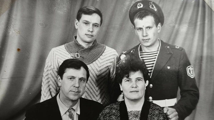 Как стало известно «Омск-информу», у главы города памятных фото хоть отбавляй. Есть снимки в форме с родителями и товарищами, есть портреты. Очевидно, что службе в ВДВ глава города уделяет особое внимание. На фотографии ниже будущий мэр запечатлен с братом Дмитрием и родителями Ниной и Николаем.
