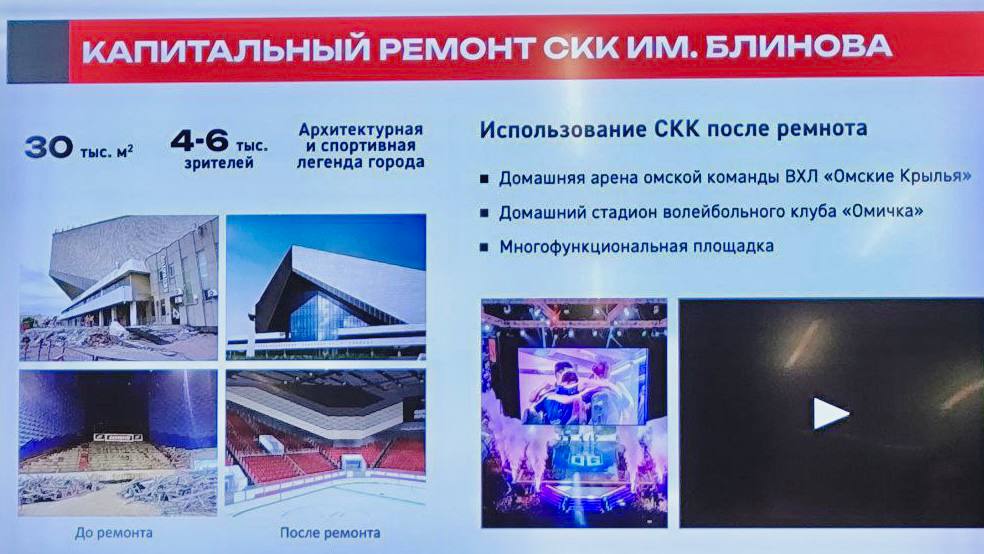 После реконструкции комплекс станет домом для «Омских Крыльев» и «Омички», а также площадкой для мероприятий.