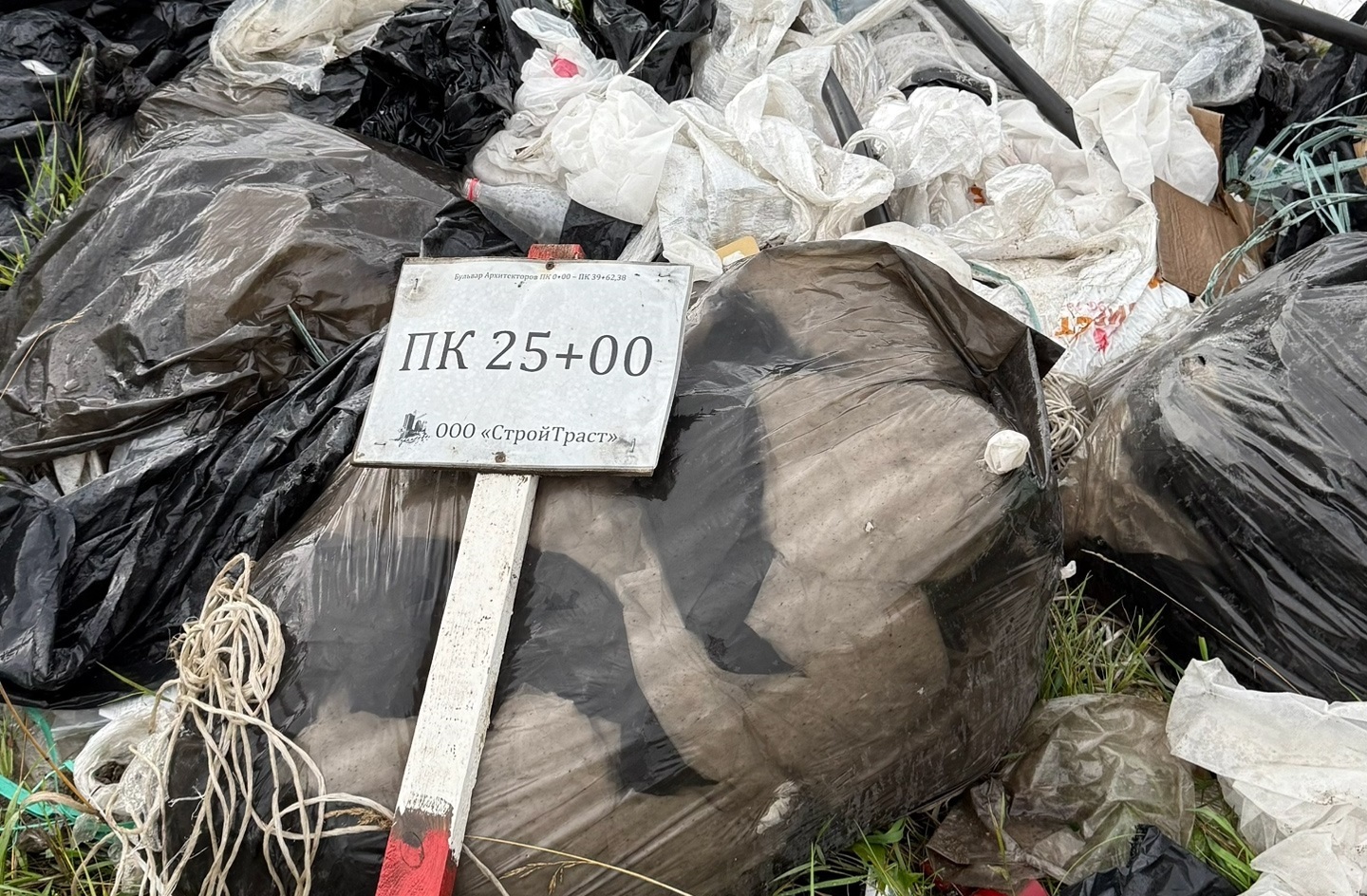 На бульваре Архитекторов в Омске нашли свалку с символикой «СтройТраста»
